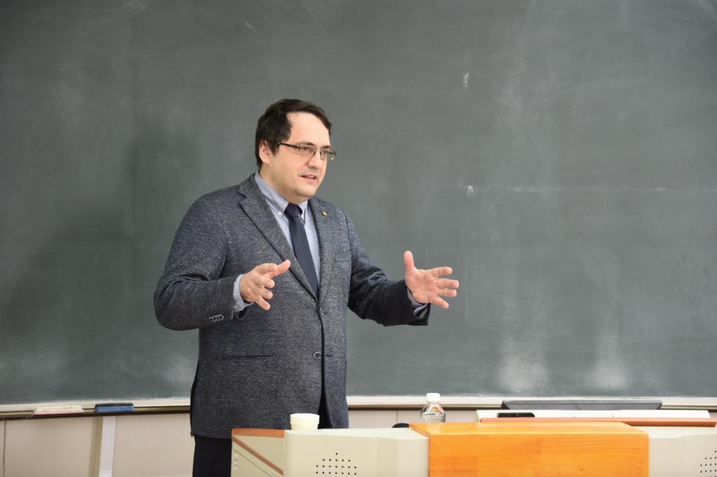 3月28日上午,学校在综合楼201教室举办了大师公开课。公开课由乌拉尔联邦大学人文学院院长舍曼纽科院士和俄罗斯行为遗传心理学实验室主任马雷赫院士主讲。教育科学学院院长于海英教授主持大师公开课,于海英院长对两位院士的到来表示欢迎、对院士的精彩讲座表示感谢,她希望两位院士能够常来我校传经送宝,为双方合作交流和两国乡村教育研究与发展贡献更多力量。