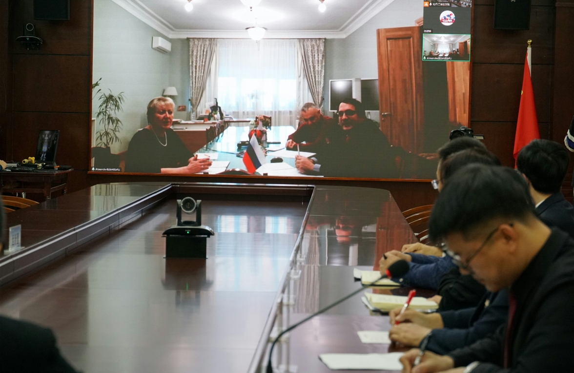 12月16日,我校与俄罗斯乌拉尔联邦大学举行“中俄乡村教育研究”国际合作团队线上签约仪式。乌拉尔联邦大学乌拉尔人文学院院长、俄罗斯教育科学院通讯院士希曼纽克·艾丽维拉·艾瓦里多芙娜,俄罗斯教育科学院院士马雷赫·谢尔盖·鲍里斯耶维奇,乌拉尔人文学院科研项目规划处处长季霍米洛娃·塔季扬娜·尼古拉耶夫娜,乌拉尔人文学院教学副院长切尔诺乌霍夫·德米特里·爱德华多维奇,乌拉尔人文学院科研副院长扎巴利·尤利娅·弗拉基米尔罗芙娜;我校副院长张冰及国际交流合作处、组织部、科研处、研究生学院、教务处、人事处、教育科学学院负责人参加线上签约仪式。