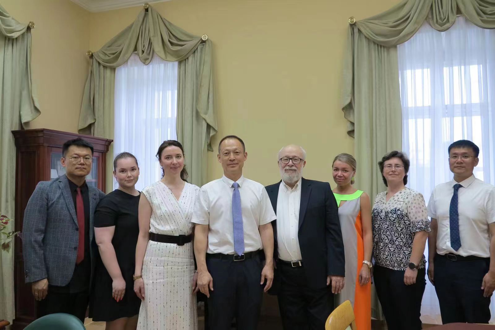7月10日上午,代表团陪同黑龙江省教育厅厅长陈延良拜会了俄罗斯斯维尔德洛夫斯克州教育与青年政策部副部长泽列诺夫、外事与对外经济联系部副部长别尔格。李春江院长向俄方参会人员介绍了我校的基本情况,以及近期对俄合作取得的成果。下午,代表团访问了乌拉尔联邦大学人文学院,与院长德米特里切尔纳乌霍夫教授、外事处处长亚历山大布尔纳索夫教授举行会谈,双方在本硕博联合培养、学生竞赛、教师互访、人才引进、科研合作等领域深入交流。