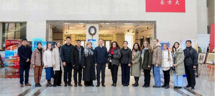 为庆祝2024年中俄建交75周年及中俄文化年,11月7日上午,“艺韵交融 丹青筑梦”中俄美术交流绘画作品展在阳光大厅开幕。展览展出俄罗斯新西伯利亚国立建筑设计艺术大学与我校美术与设计学院的教师绘画作品。院长、党委副书记李春江,副院长张冰,国际交流合作处、美术与设计学院负责人及两校师生代表出席开幕式并参观展览。