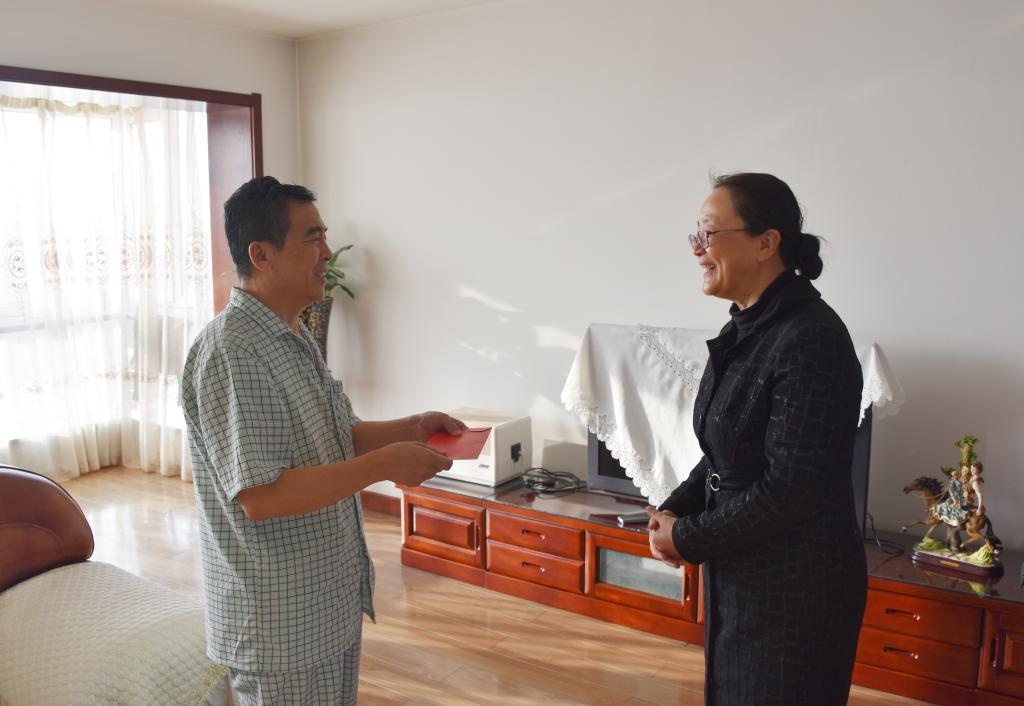 随后,梁校长一行来到西苑小区老院长张凤家中看望慰问,并饶有兴致聆听了老领导讲述的学校历经三十年搬迁的艰难历程,感谢老领导为学校搬迁和发展建设做出的历史性贡献,同时带去了学校党委和王书记的问候,祝福老院长健康长寿。之后,梁校长一行驱车来到市中心先锋小区、北山家属区,看望慰问了老领导刘祥及退休老教师代表米中源教授和其久病卧床的夫人,详细了解他们的身体健康情况和实际需求,嘘寒问暖、促膝交谈,带去了组织的关怀和温暖。