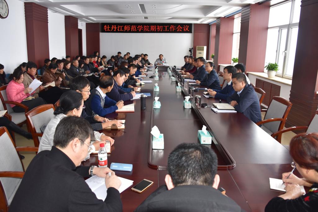 校党委书记王育伟就本学期重点工作做了重点强调。一要以迎接巡视组进校为契机,全面整改学校工作,净化学校的政治生态。二要抓住审核评估整改的契机,全面整改、全面提升人才培养质量。三要有序推进学校综合改革,激发学校发展活力。四要争取牡丹江市的全力支持,逐步改善学校的办学条件。五要全力筹备好学校60年校庆,凝聚学校发展合力。他强调,要抓好今年的工作落实,要把从严治校提出的目标落到实处,要把责任担当落到实处。