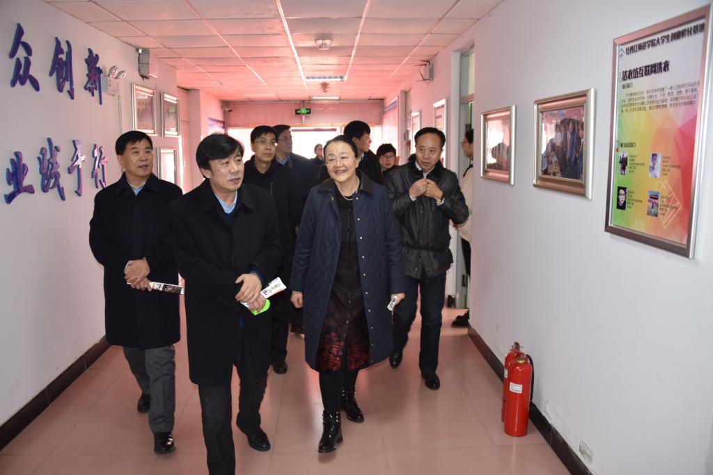 3月17日上午,省教育厅厅长赵国刚一行在牡丹江市副市长苏凤仙的陪同下来我校考察大学生创新创业工作。我校党政领导王育伟、梁中贤、杨敬民、张冬、秦植林及相关部门负责同志陪同考察。