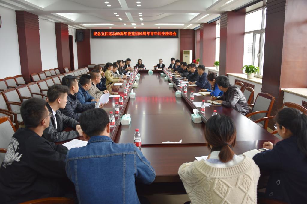 5月4日上午,学校在综合楼1206召开纪念五四运动99周年暨建团96周年青年师生座谈会。校党委书记王育伟、校党委常委、组织部部长张冬、来自各二级学院的21名青年师生代表以及教务处、人事处、学生处、创业就业指导中心、团委等部门领导参加座谈会。会议由团委书记郑维东主持。