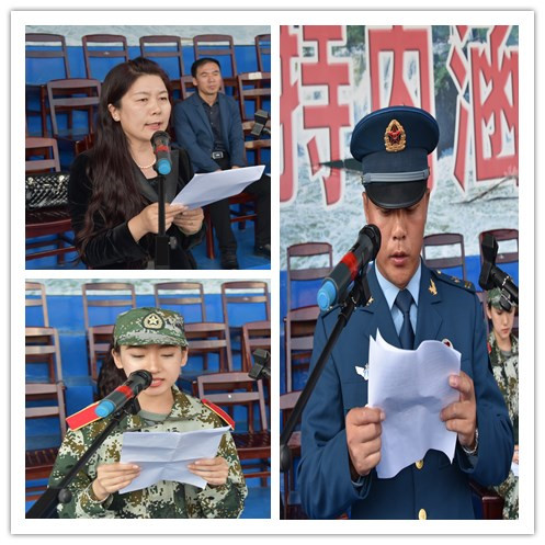 教官代表中国人民解放军93383部队教官宫海东和教师代表西方语言学院院长赵祥凤教授以及新生代表文学院2018级广播电视学专业曹文爽代表分别发言。