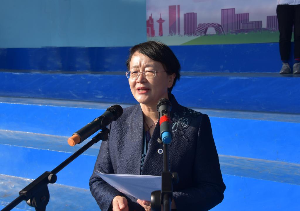 校长梁中贤致开幕词。她代表学校对本届运动会的召开表示热烈的祝贺!向为此次运动会筹备工作付出辛勤劳动的同志们、向积极参与本次运动会的全体裁判员、教练员、运动员、工作人员致以诚挚的谢意!并向积极参加今天活动的离退休老同志和全校师生员工致以美好的祝愿!她在讲话中回顾并肯定了我校优良的体育运动传统以及近年来我校体育工作所取得的突出成绩。她指出,田径运动会是我校校园体育文化生活的传统项目,有力地促进了我校全面素质教育和全民健身运动的推行;也有力地促进了校园精神文明建设,提升了校园文化品位;更是广大师生展示风采、促进交流充满生机和活力的舞台。她希望广大师生能以本届运动会为契机,全面检验学校的综合体育水平,进一步激发师生锻炼身体的积极性,为更好地工作、学习和生活奠定良好的身体基础;也希望运动员们奋力拼搏,裁判员们秉公执法,后勤人员能周到服务,秉承“重在参与、增强体魄”的运动宗旨,在赛场上团结合作,超越自我,创造更加优异的成绩,力争体育运动成绩和道德风尚双丰收! 最后,她预祝运动员取得优异成绩,运动会圆满成功。