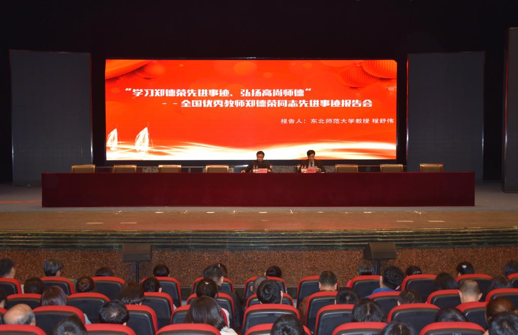 在第二阶段会议中,学校邀请郑德荣同志先进事迹报告团主讲嘉宾,程舒伟教授报告了郑德荣同志的先进事迹。学校党政领导出席报告会,全体教职工及师范类学生代表参加了报告会。报告会由党委常委、副校长杨敬民主持。