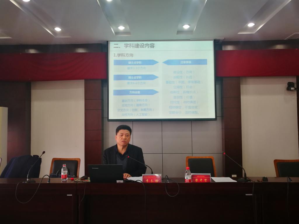 12月16日上午,我校邀请省学位委员会办公室主任、省教育厅学位管理与研究生教育处处长李长福做学科建设与管理专题报告,报告会在综合楼1306会议室召开。校长梁中贤,省内17所高校音乐学院院长(系主任)、学科带头人、相关专家,我校各学科带头人、二级学院院长、部分学科骨干,研究生学院全体人员参加了报告会。会议由校长梁中贤主持。