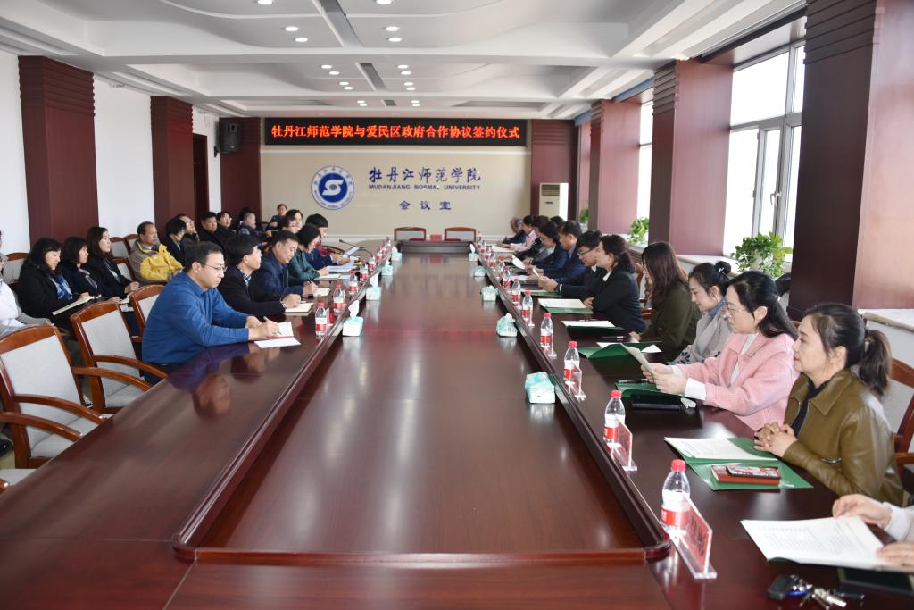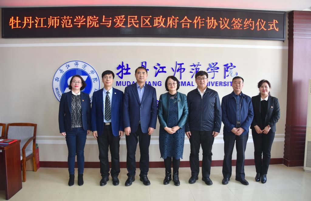 仪式上,我校杨敬民副校长与牡丹江市爱民区人民政府区长王继武分别代表我校和爱民区人民政府签署合作协议。