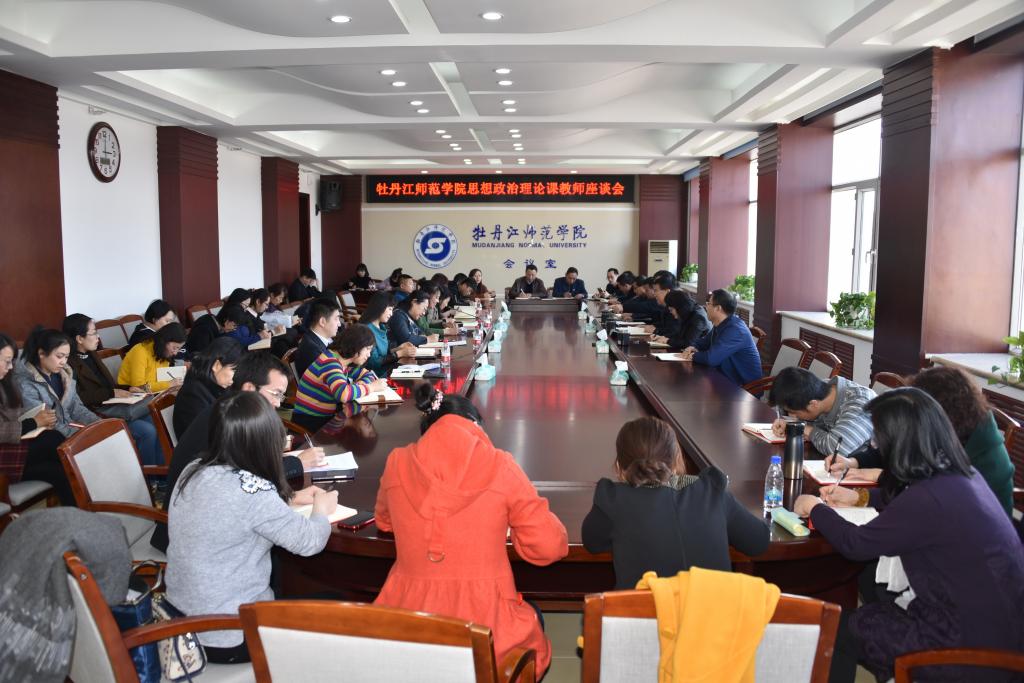 为深入贯彻落实习近平总书记在学校思想政治理论课教师座谈会上的重要讲话精神和全省学校思想政治理论课教师座谈会精神,4月3日下午,学校思想政治理论课教师座谈会在综合楼1206会议室召开。校党委书记王育伟,校长梁中贤,校党委常委、宣传统战部部长秦植林出席会议;马克思主义学院思想政治理论课专职教师,学校思想政治理论课兼职教师代表及教务处、科研处、人事处、宣传统战部、学校办公室等相关职能部门负责人参加了会议。会议由校党委常委、宣传统战部部长秦植林主持。