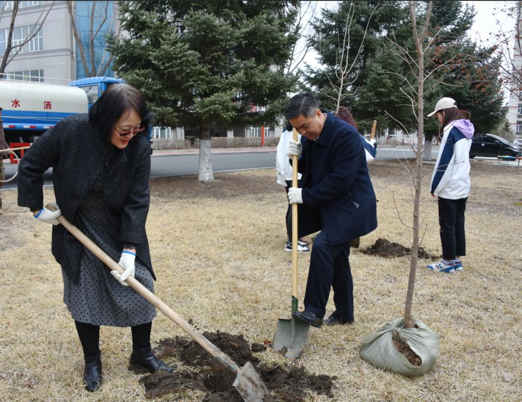 4月18日下午,校长梁中贤,校党委常委、副校长张冬,与计算机与信息技术学院教师、学生代表,相关职能部门一道来到学校时光广场参加学校2019年义务植树活动,为学校再添新绿。