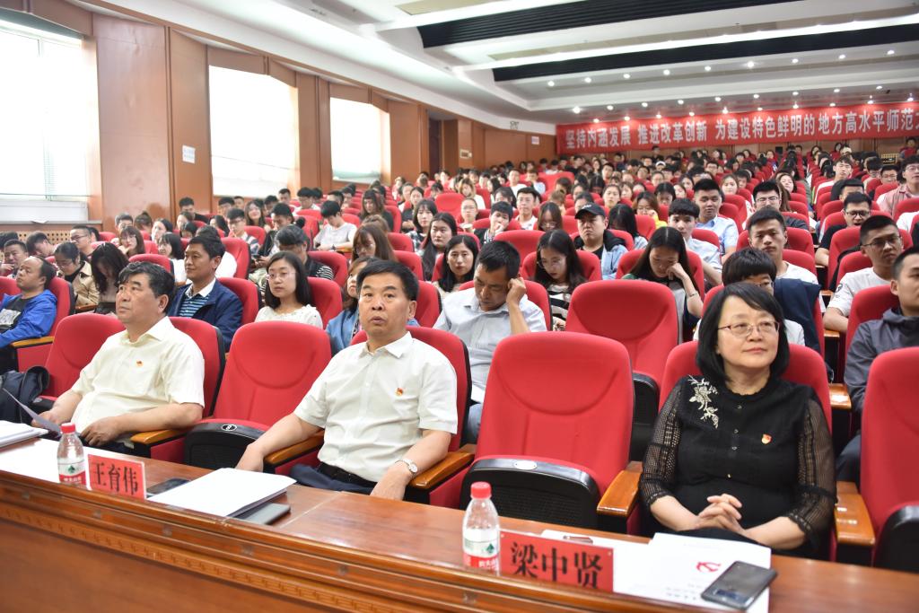 部分二级学院党委书记、副书记、学生党支部书记、辅导员,学校党委党校全体干部,第28期中共预备党员培训班学员,2019届毕业生党员代表共计400余人参加了汇报会。