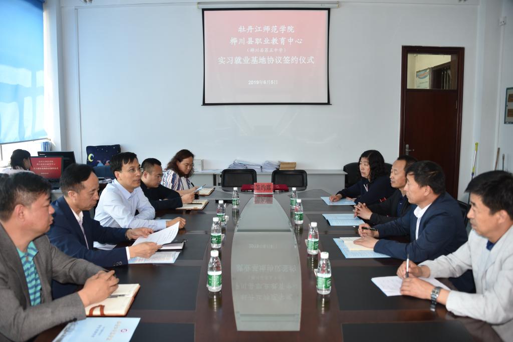 6月5日,桦川县教育局副局长郭志刚、桦川县职业教育中心校长陈学会等一行13人来我校洽谈校园招聘和“校校”共建合作事宜。双方在综合楼219会议室举行签约仪式。签约仪式由我校创业就业指导中心主任李强主持。