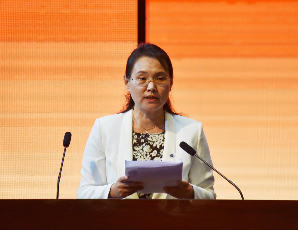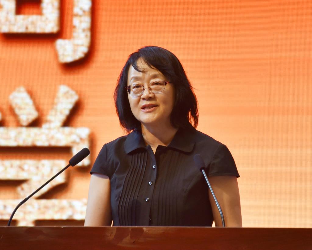 校党委常委、工会主席张艳霞宣读《关于准予2019届陈磊等3472名学生毕业、授予陈磊等3461名学生学士学位的决定》,并宣读本科毕业证书、学士学位证书