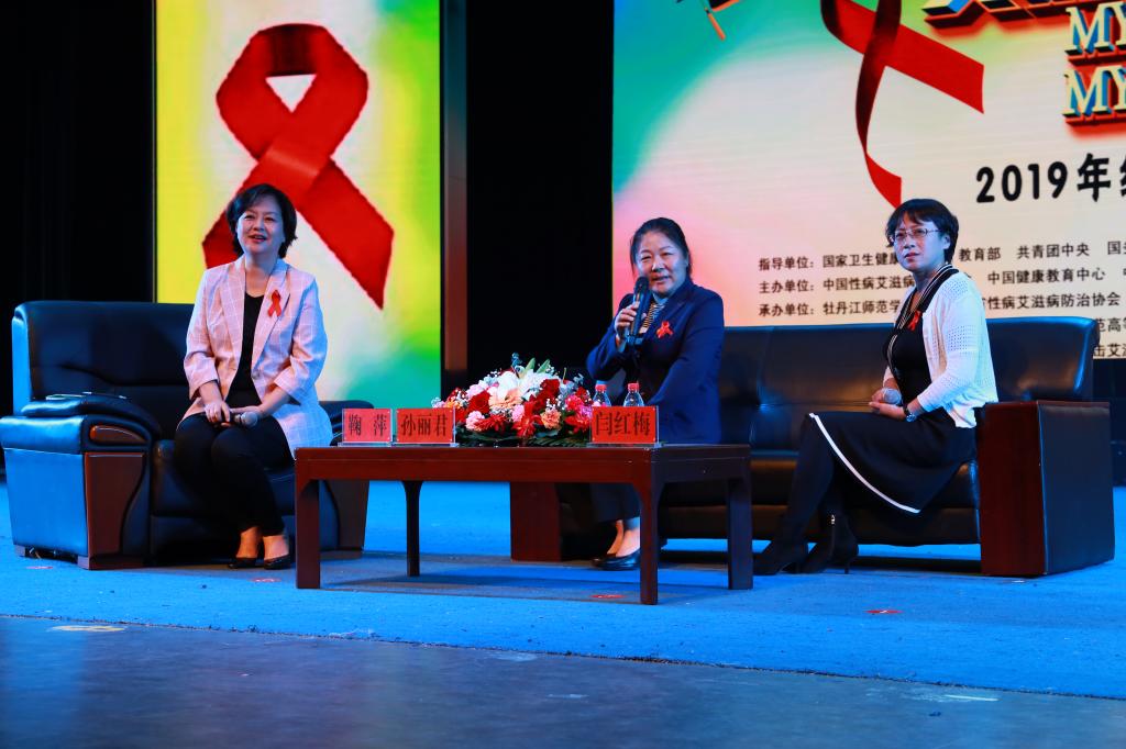 在访谈环节,中央电视台著名主持人、“红丝带”健康大使鞠萍与首都医科大学附属北京佑安医院性病艾滋病门诊主任孙丽君,黑龙江省疾病预防控制中心主任医师闫红梅两位艾滋病防治领域的专家,围绕艾滋病的传播途径、防治方法、后期治疗等问题,通过情景表演、主题访谈、互动问答等生动活泼的方式,为学生们上了一堂生动的防艾公开课,进一步加强了青年学生群体防艾宣传教育的针对性、有效性,提高了大学生艾滋病防控意识和能力,倡导大学生养成科学健康的生活方式,遏制艾滋病在青年学生群体中的传播。