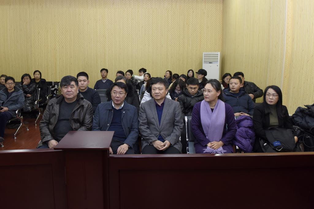 随后,王志浩书记一行领导来到校园审判庭。与牡丹江市总工会的干部一起,庭审观摩了“冯某某诉牡丹江市人民政府和宁安市政府”行政诉讼案件。在庭审期间,王志浩书记与牡丹江市中级人民法院党组成员、副院长徐常禄就发挥法学专业优势、服务地方项目深度合作,合力培养卓越法治人才,加强法院和学校文化交流,实现校政协同育人目标等问题进行深入交流。