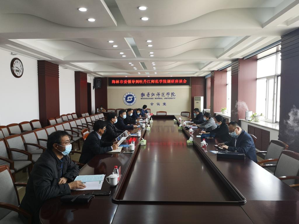 4月11日,海林市委书记金银华,海林市委副书记齐淑伟,海林市委常委、组织部部长赵立群等一行4人来我校调研。我校党委书记王志浩,党委副书记刘峰,副校长李旭中,党委常委、副校长杨敬民出席座谈会。发展规划处、办公室、中国抗联研究中心等相关职能部门负责人参加了座谈会。座谈会在我校综合楼1206会议室召开,由我校党委书记王志浩主持。