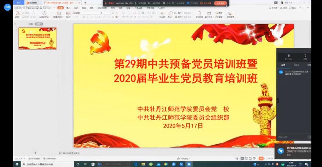 为进一步加强对中共预备党员的教育和考察,强化毕业生党员的离校教育,发挥党员先锋模范作用,5月17日-20日,学校党委党校、组织部通过钉钉线上培训方式举办第29期中共预备党员培训班暨2020届毕业生党员教育培训班。全校教职工预备党员、学生预备党员和2020届毕业生党员代表共计464人参加了培训。