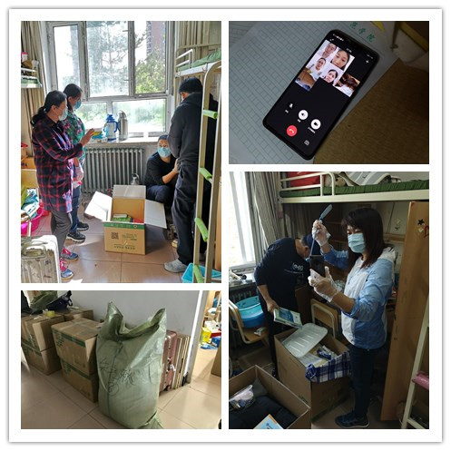 新冠肺炎疫情发生以来,我校高度重视,始终把师生生命安全和身体健康摆在首要位置,周密部署、精准施策做好学校疫情防控各项工作。为切实守护学生安全健康,让学生安心进行线上学习,解除因疫情影响无法返校复课的后顾之忧,学校先后发放各类困难学生补助金、国家助学金共计650余万元;向绥芬河抗疫临时团支部10名成员发放防护服10件、一次性医用口罩100只、一次性手套100副;向留牡返牡48名学生发放含氯消毒片240片、小喷壶48个、一次性医用口罩960只。近日,因受牡丹江疫情防控形势影响,毕业生不适合返校整理个人物品,他们留在学校寝室的行李、电脑、书籍、生活用品等个人物品成为了学生们最为关心的问题,学校经过前期认真策划、积极准备,从6月1日起,组织在校内家属区居住的教职工开展了“师生结对”关爱行动,各二级学院确定两至三名教职工“结对”到毕业生宿舍,通过全程视频连线的方式,帮助不能返校的毕业生整理宿舍物品,打包后统一邮寄。