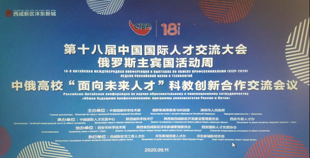9月11日下午,党委常委、副院长杨敬民应邀线上参加中俄高校“面向未来人才”科教创新合作交流会议,本次会议是第十八届中国国际人才交流大会俄罗斯主宾国活动周重点活动之一。