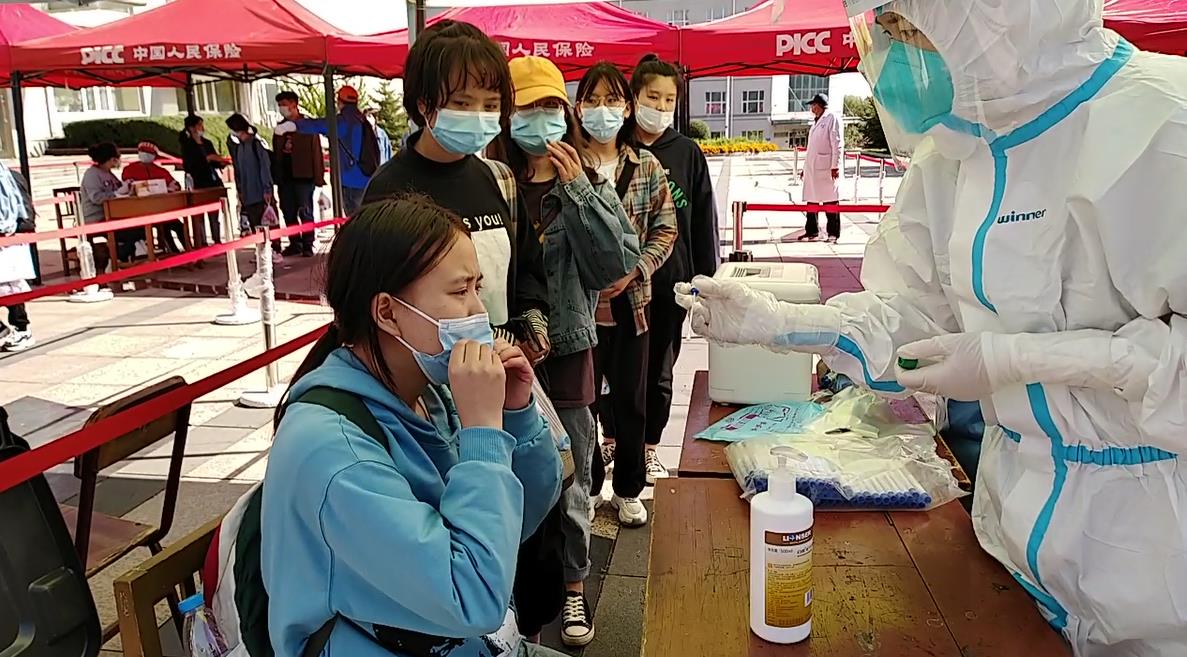学生排队接受核酸检测