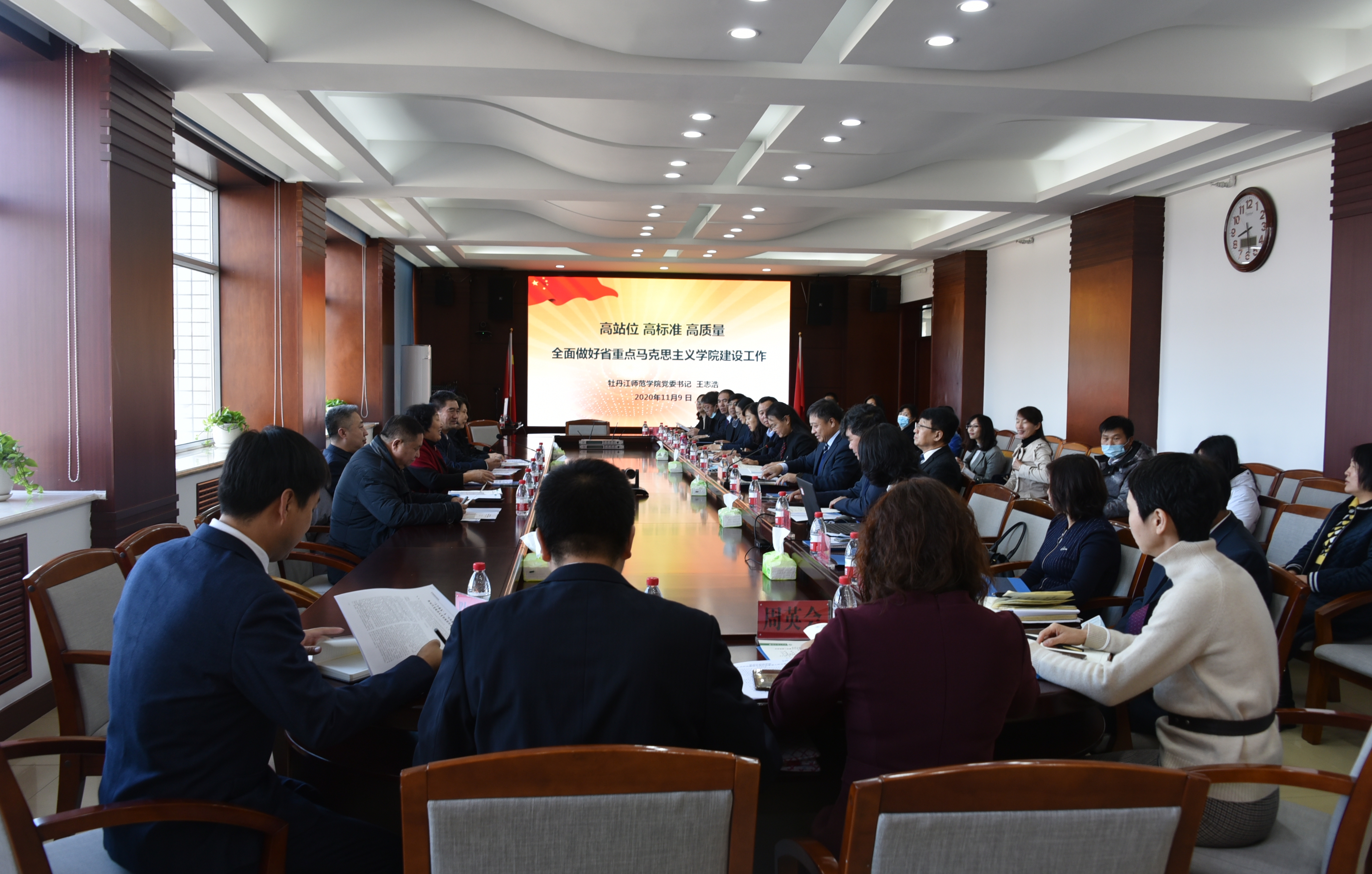 11月9月,省委教育工委宣传部、省教育厅思想政治教育处一级调研员刘铎,省思政课教指委主任陈文斌等一行5人到我校对省重点马克思主义学院建设情况进行实地核查。核查汇报会在综合楼1206会议室举行。第二批黑龙江省高校重点马克思主义学院建设实地核查考核组成员,我校党政领导出席会议;我校相关职能部门负责人,马克思主义学院班子成员、教研室主任及教师代表参加会议。党委书记王志浩主持汇报会并作学校省重点马克思主义学院建设汇报。