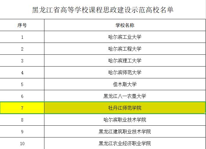 按照黑龙江省教育厅《关于开展2020年黑龙江省高等学校课程思政建设示范高校、示范课程、教学名师和教学团队等遴选工作的通知》(黑教高函〔2020〕222 号)文件要求,黑龙江省教育厅组织专家委员会进行了遴选,认定2020年黑龙江高等学校课程思政建设示范高校10所(其中本科院校7所、高职高专3所)、示范课程105门、教学名师33名和教学团队37个。