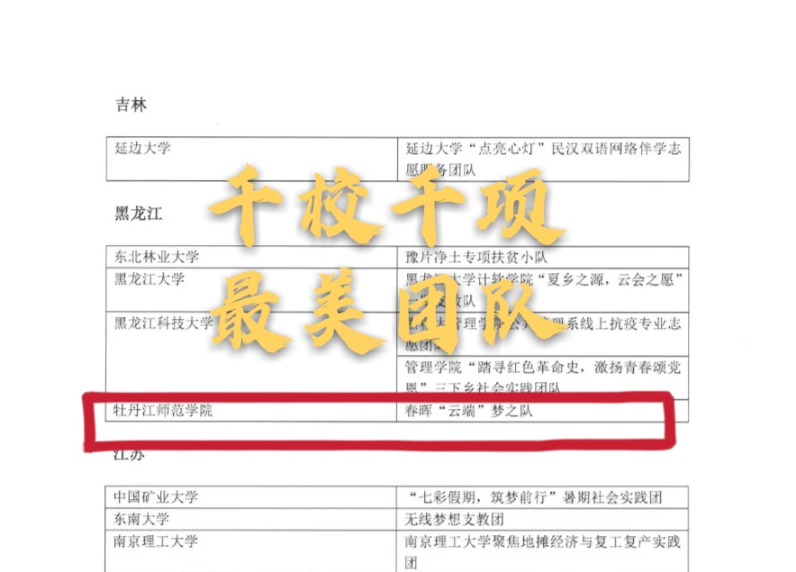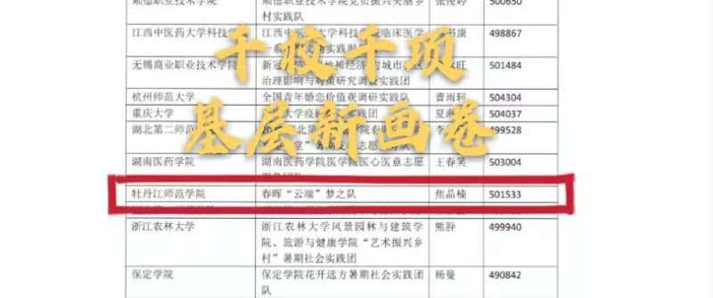 据悉,“千校千项”网络展示活动旨在从当代大学生中树立一批在社会实践、志愿服务、支教工作等领域积极投身基层服务,在当代大学生中能够起到示范作用的榜样。本次“千校千项”网络展示活动经过作品申报、资格筛查、网络点赞、专家评审等环节,最终300个“最美团队”、300名“青年基层观察员”、384个“基层新画卷”入选。此次入选是对我校暑期社会实践活动的高度肯定,对呼吁更多青年力量投身于社会实践,引领青年学生努力做“有理想、有追求、有担当,有作为”的大学生起到了积极的促进作用。