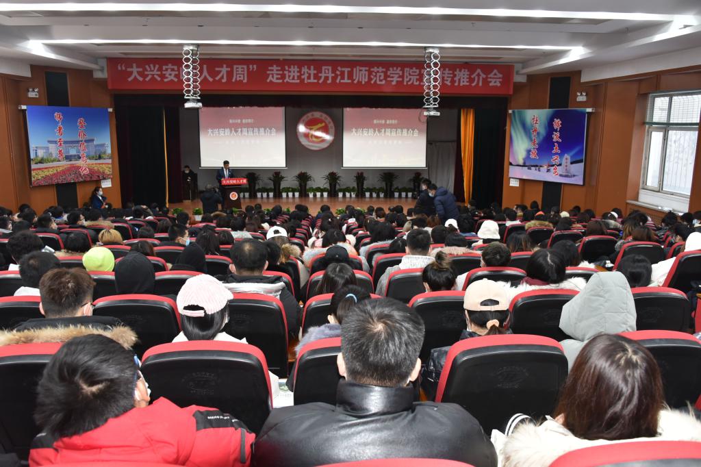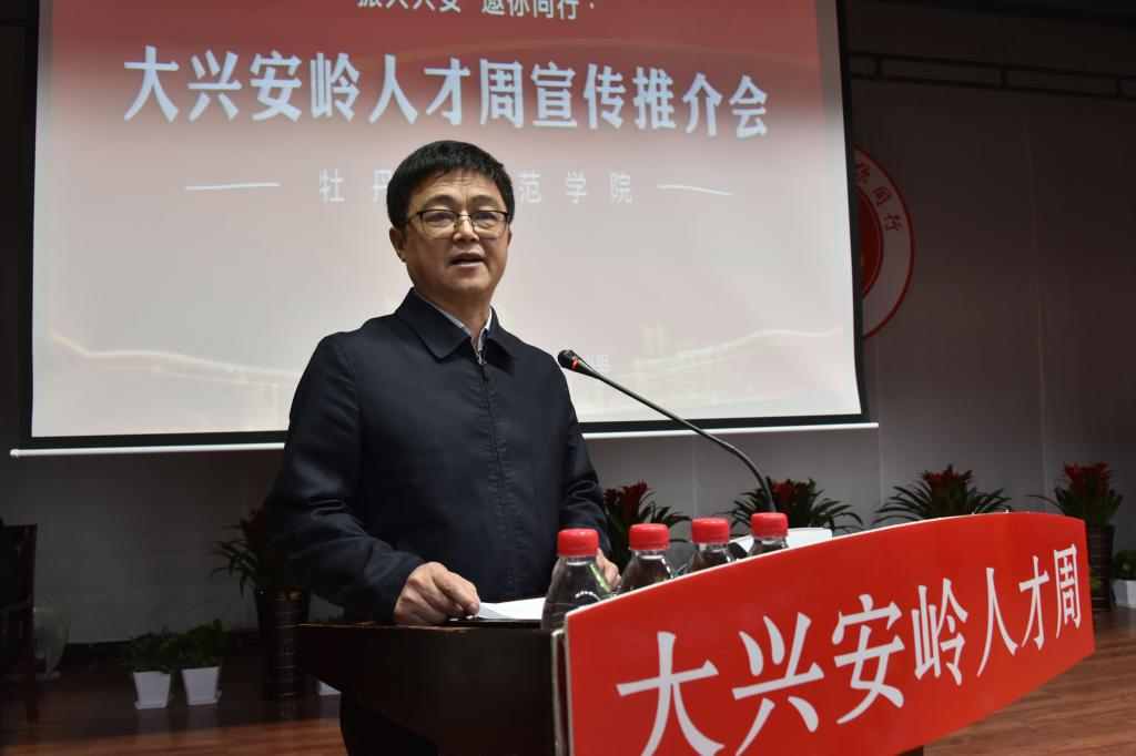 会上,漠河市委书记吴庆军,大兴安岭地区教育局党组书记、局长徐云阁,大兴安岭地区人力资源和社会保障局副局长佟晓光分别围绕人才政策、岗位需求、引进渠道等作了专题宣讲推介。我校优秀毕业生、共青团大兴安岭地委副书记何凤,漠河市北极镇人大主席文竹介绍了自己的成长经历和工作经历,希望学弟学妹选择大兴安岭、扎根大兴安岭。