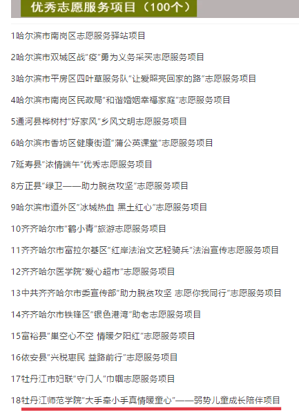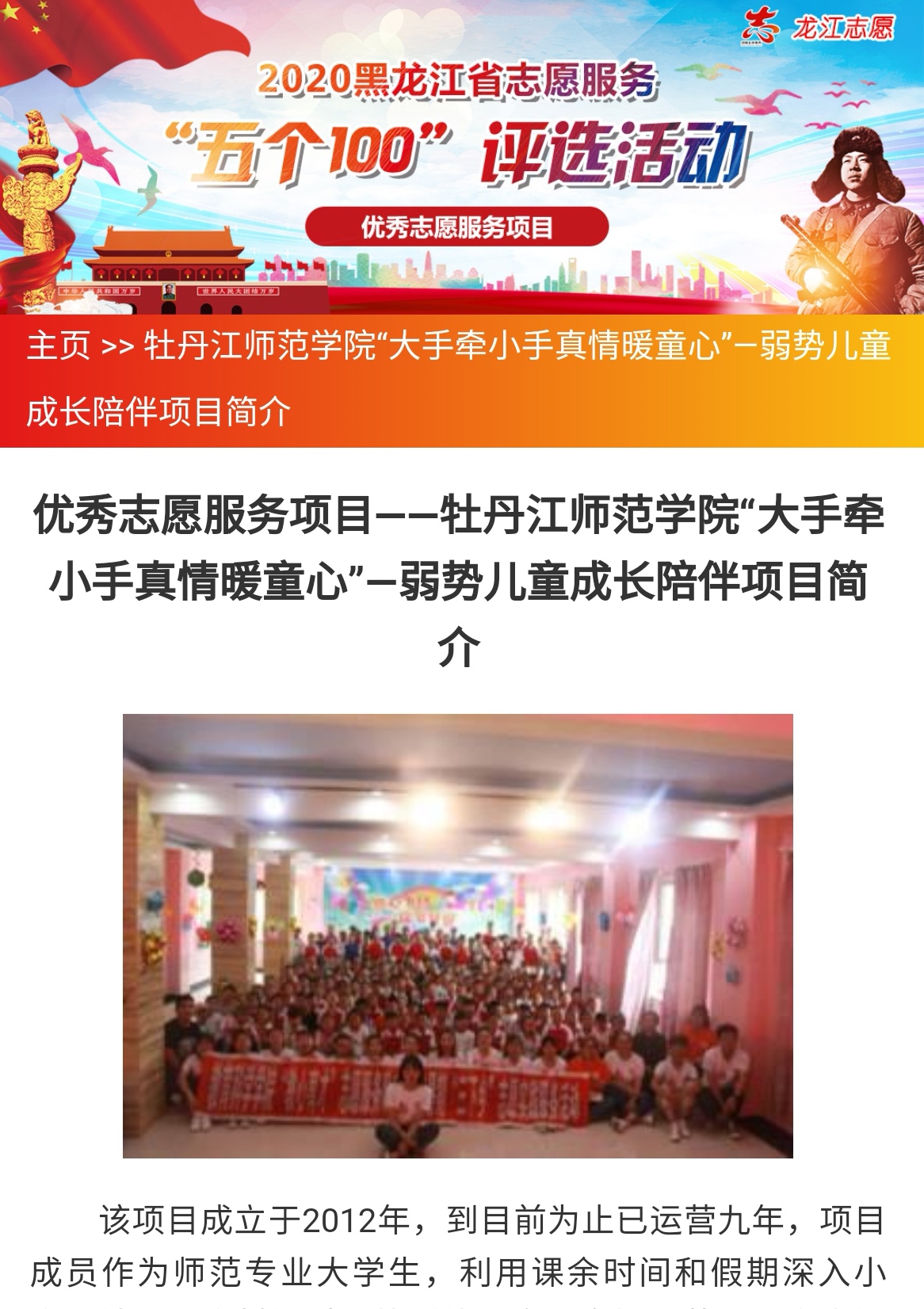 1月18日,黑龙江省文明委发布了2020年全省志愿服务“五个100”先进典型名单,教育科学学院申报的久青草无码视频在线观看第一苞-日韩 高清 无码 人妻-局长揉着秘书的双乳H文电影-免费观看已满十八岁电视剧两女-成熟人妻AV无码专区A片麻豆“大手牵小手 真情暖童心”——弱势儿童成长陪伴项目榜上有名,入选“五个100”优秀志愿服务项目。