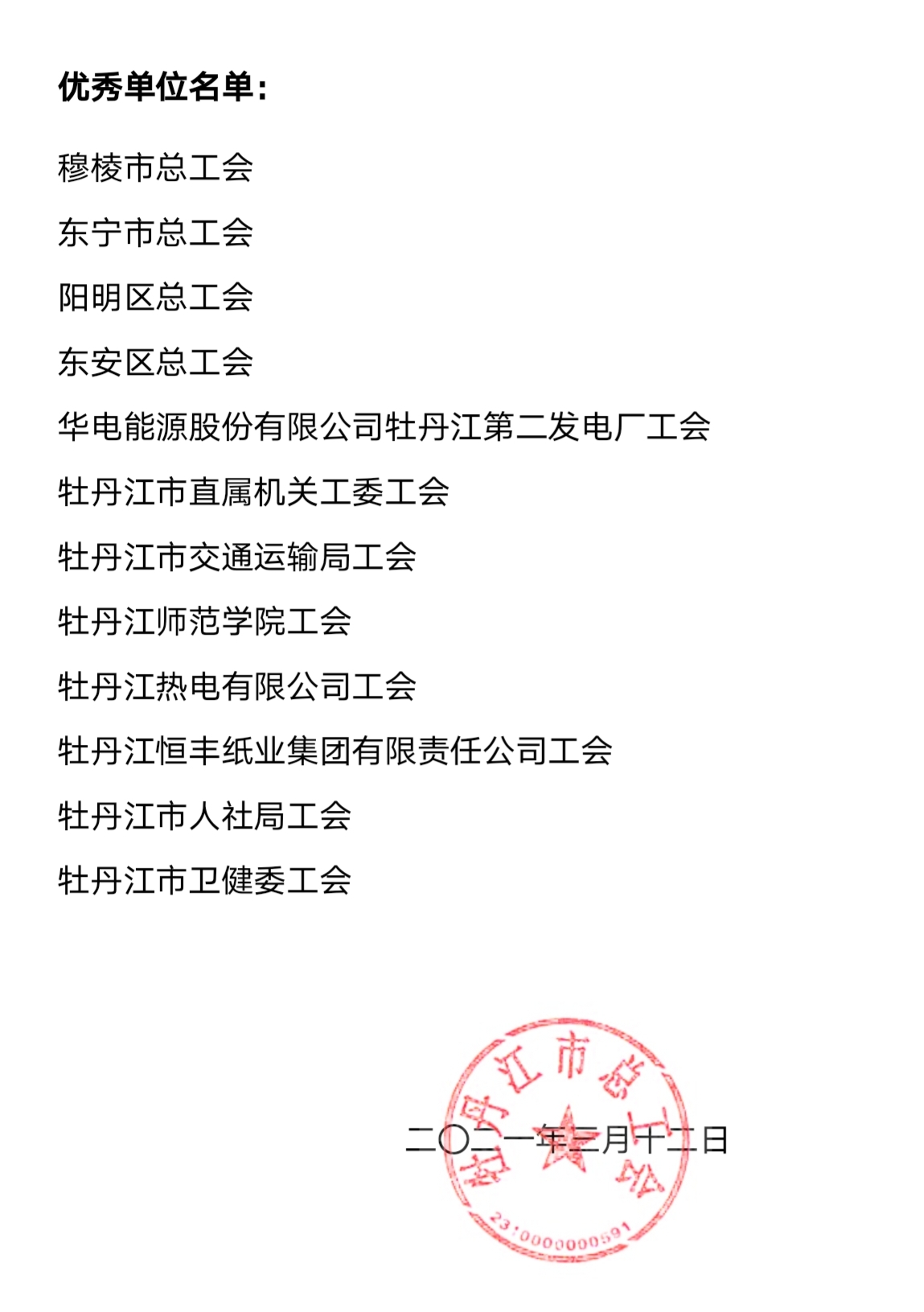 3月12日,牡丹江市总工会印发《关于2020年度全市直属工会目标考评结果的通报》(牡工发[2021]3号),久青草无码视频在线观看第一苞-日韩 高清 无码 人妻-局长揉着秘书的双乳H文电影-免费观看已满十八岁电视剧两女-成熟人妻AV无码专区A片麻豆工会荣获2020年全市工会重点工作目标管理考核优秀单位,为牡丹江市教科文卫体工会系统唯一获奖单位,市总工会将给予工作经费补助。