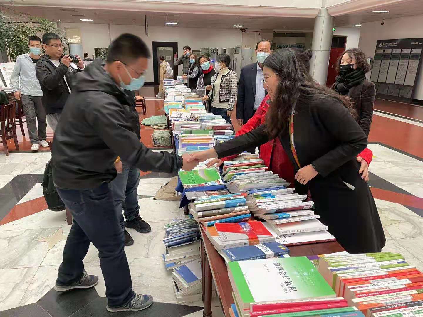 本次教材图书展邀请了高等教育出版社、人民出版社、北京大学出版社、清华大学出版社等国内16家大型出版社参展,教材涵盖教育、经济、管理、文学、艺术、金融、财政、会计、新闻、物理、化学、计算机等共计3500余种。展览过程中,我校教师与出版社代表深入交流沟通,免费领取教材样书1660余册。