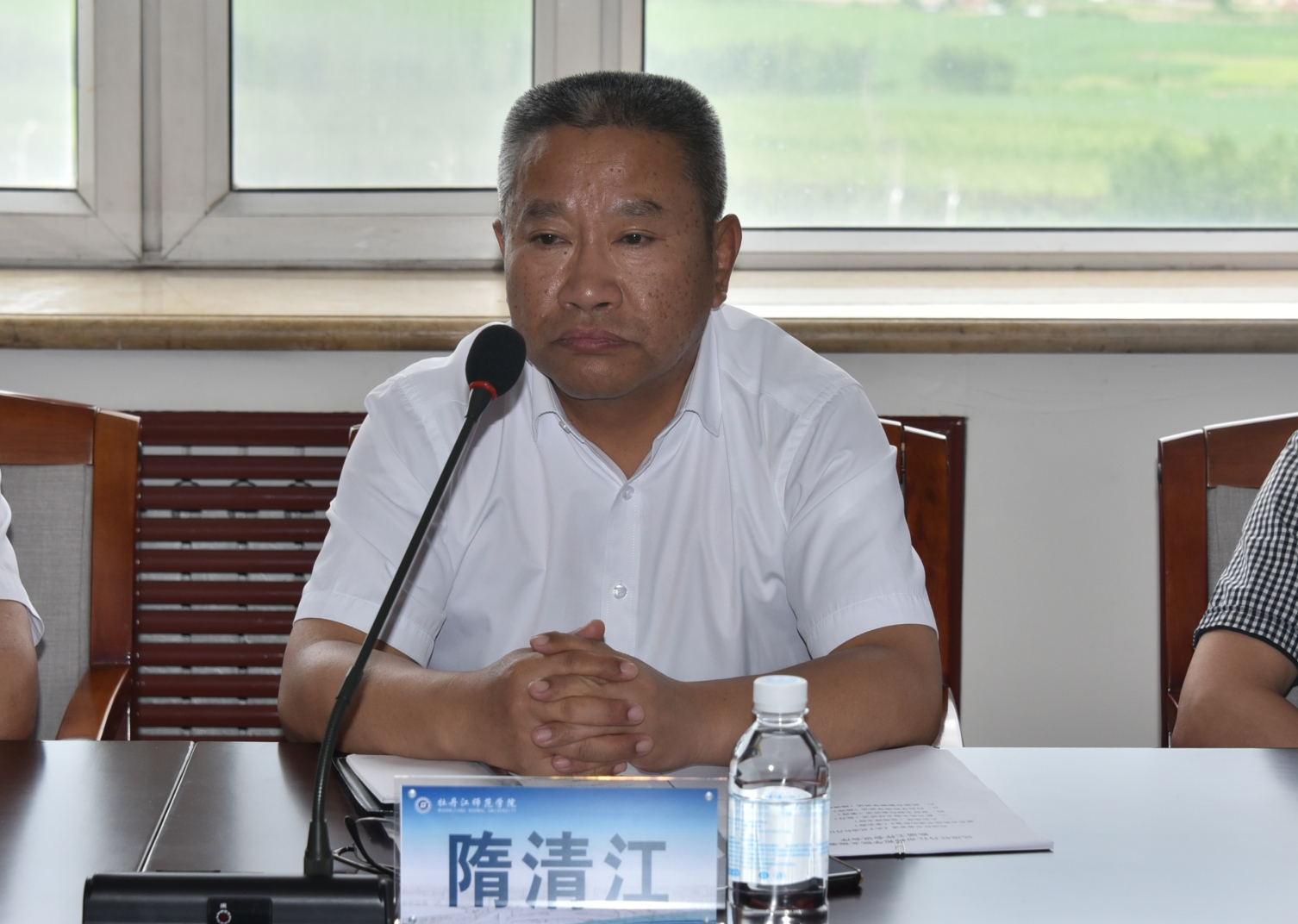 省政协常委、牡丹江市政协副主席、民进市委主委、我校自贸区学院院长隋清江在会上讲话