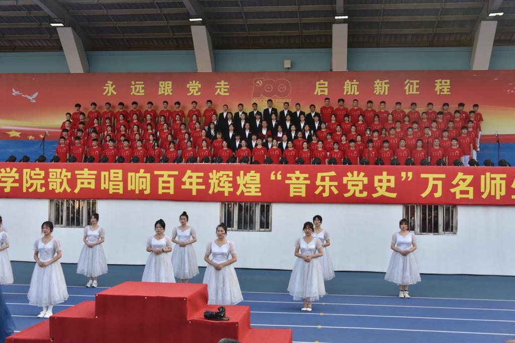 在建党百年到来之际,学校党委统一安排,围绕主题开展系列活动,各基层党委和直属党总支积极响应、广泛动员,在校内掀起了以“永远跟党走 启航新征程”为主题的红色经典歌曲演唱热潮,形成了全校总动员、师生大合唱的浓厚氛围。重温党的光辉历程、弘扬党的革命精神、讴歌党的丰功伟绩, 激发了全校师生的历史责任感、使命感、荣誉感和爱党爱国爱校情怀,引领全校师生在红色精神的感召下,在学校党委的坚强领导下,按照“12346”的发展思路,昂首阔步、乘风破浪,扎实推动学校各项事业高质量发展,以实际行动向建党百年献礼。