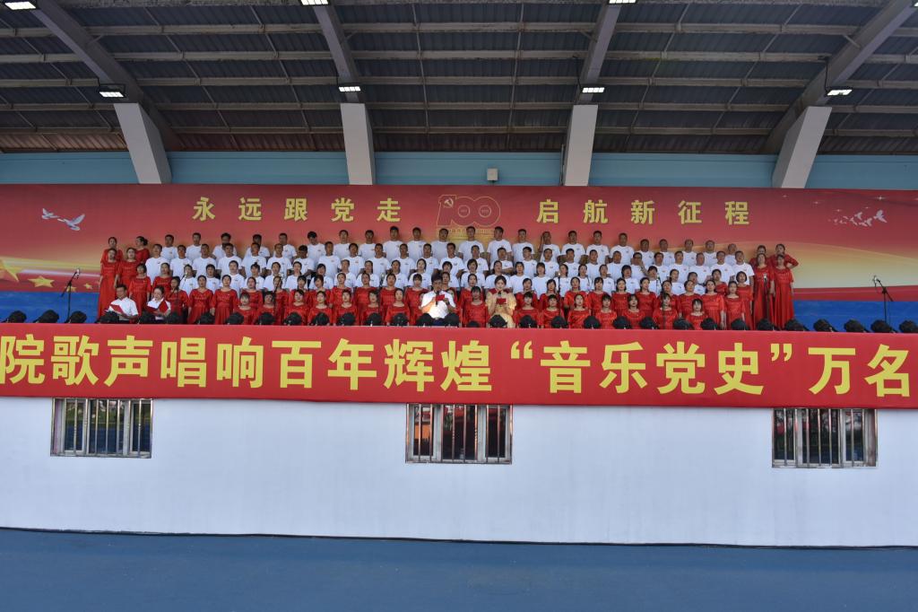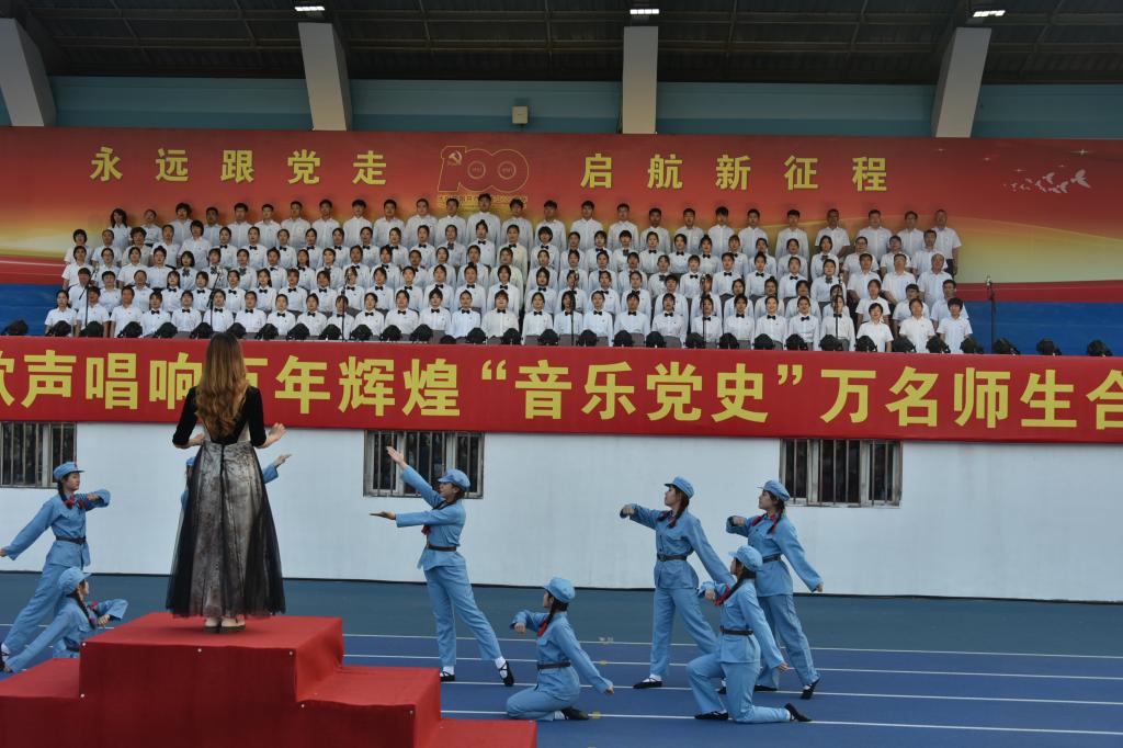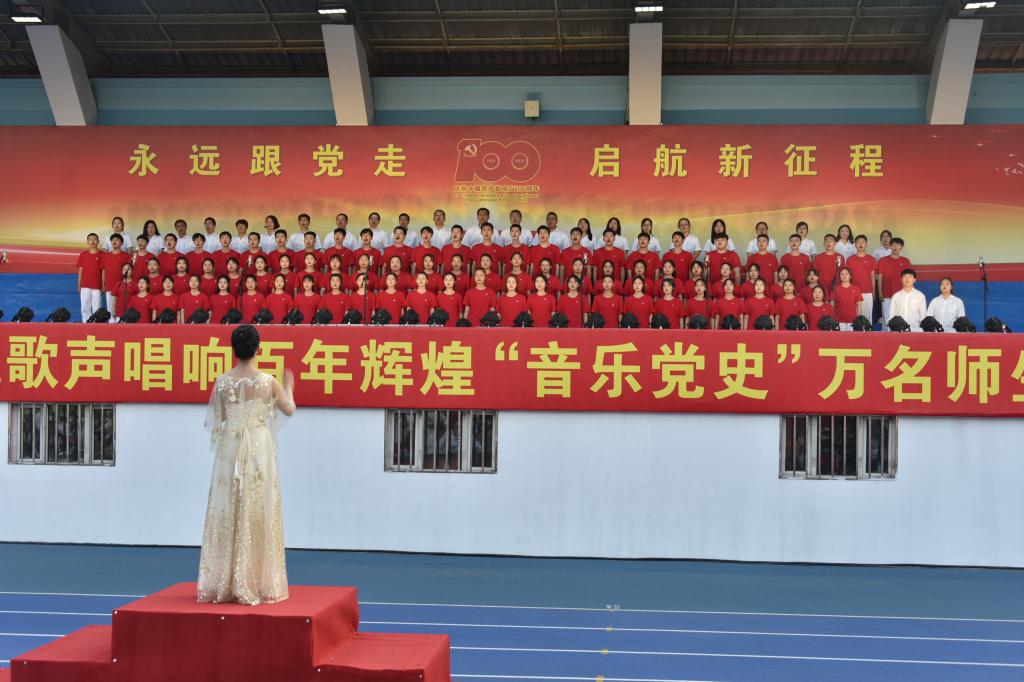 漫漫征途忆峥嵘岁月,声声嘹亮颂百年初心。6月25日下午,歌声唱响百年辉煌“音乐党史”万名师生合唱展演活动在我校田径场隆重举行。学校党政领导王志浩、李春江、刘峰、张冬、孙宝民、程爽、张艳霞、秦植林与全校万名师生齐聚一堂,唱响经典红歌、传承红色精神。