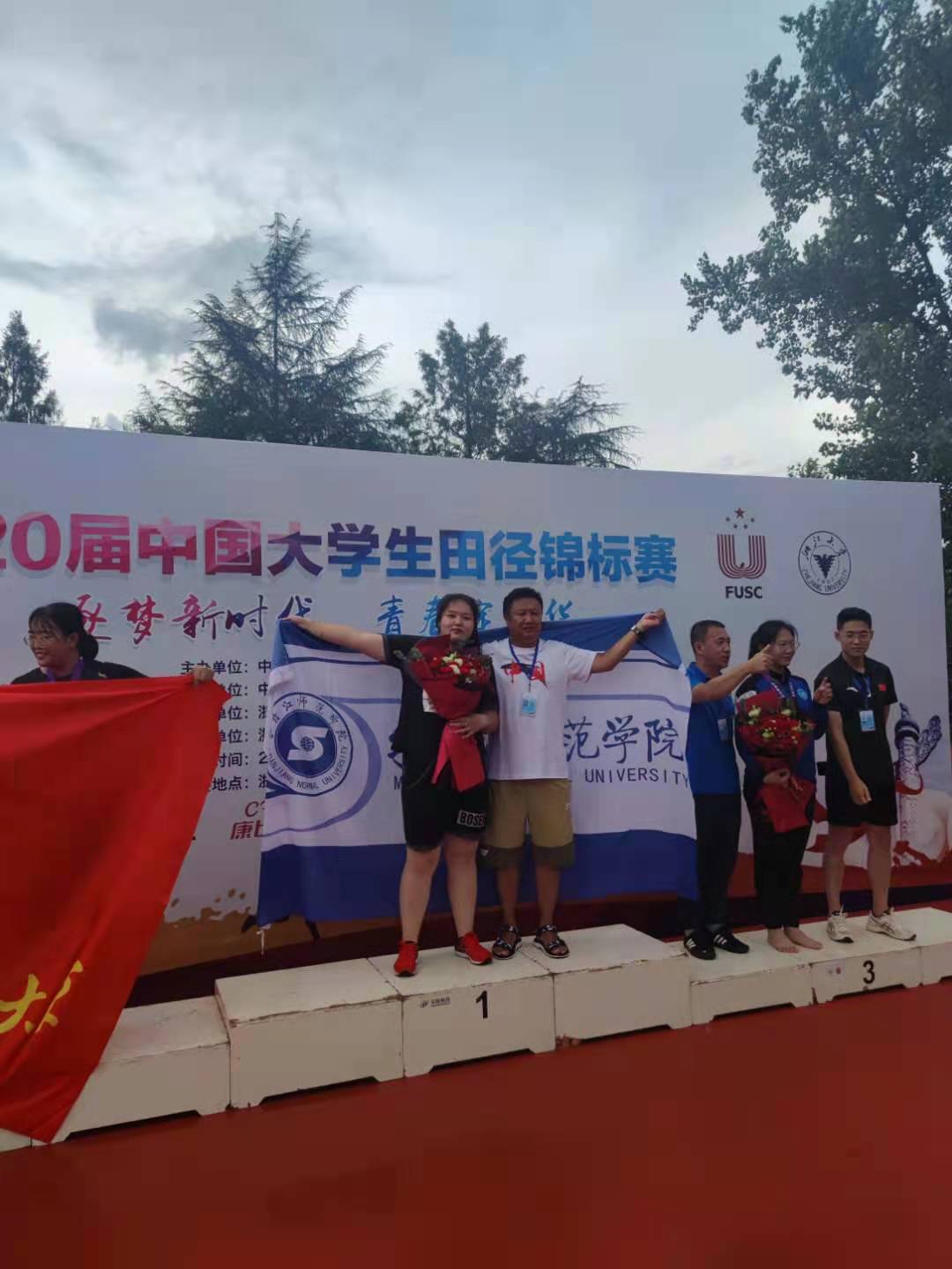 2021年7月28日—8月6日,第20届中国大学生田径锦标赛在浙江大学紫金港校区顺利举办。经过6天的激烈角逐,我校经济与管理学院刘丽鸣同学获大学生组女子铁饼第一名,经济与管理学院孙妍同学获大学生组女子铁饼第八名,物理与电子工程学院陈泰安获大学生组男子800米第五名,化学化工学院陶蕊同学获大学生组女子400米栏第八名;体育与健康科学学院成晓彤获体育专业组女子链球第七名,这也是我校体育专业在此项赛会的最好成绩。李朝福教授被评为本次锦标赛优秀教练员。
