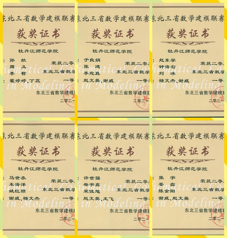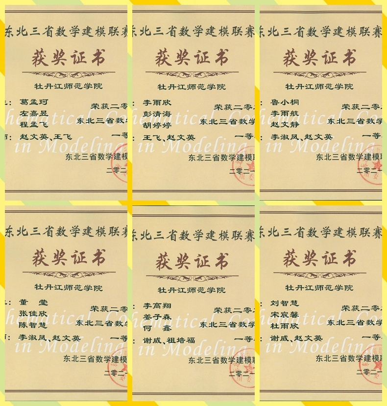 近日,第十三届东北三省数学建模联赛圆满结束。我校13支队伍获得省级一等奖、4支队伍获得省级二等奖、1支队伍获得省级三等奖、5支队伍获得成功参赛奖。其中,由2018级金融数学专业赵东学,2018级数学与应用数学专业钟海匀、刘冰组成的队伍被黑龙江省数学建模组委会推荐,将代表黑龙江省参加“深圳杯”全国数学建模挑战赛(黑龙江省只选2组),创造了我校参加此项比赛以来的最好成绩。