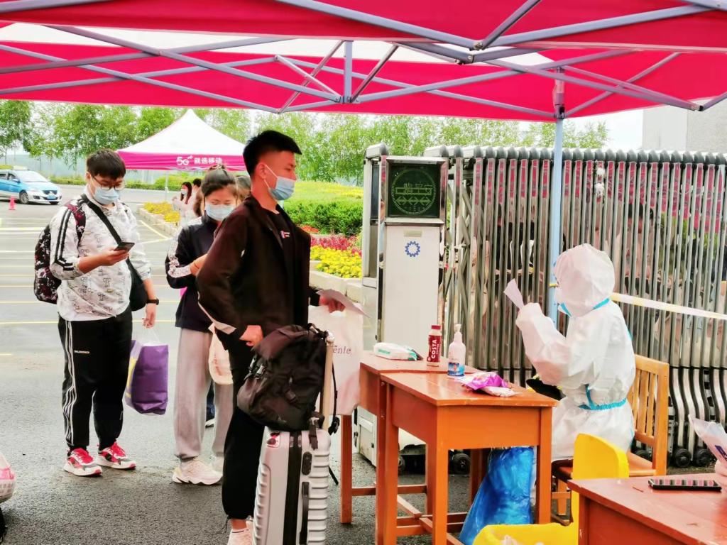 学校按照常态化疫情防控要求,严把学生返校第一关。在学校北门设置6条学生入校专用通道,学生持本人学生证或“一卡通”、48小时内核酸检测结果阴性报告,经扫码、身份核验、核酸检测报告查验、测温、手消、替换口罩后进入校园,在各学院接待处办理相关手续、到综合楼北广场完成核酸样本采集后,回到寝室进行隔离观察,待核酸检测结果为阴性后方可解除隔离。