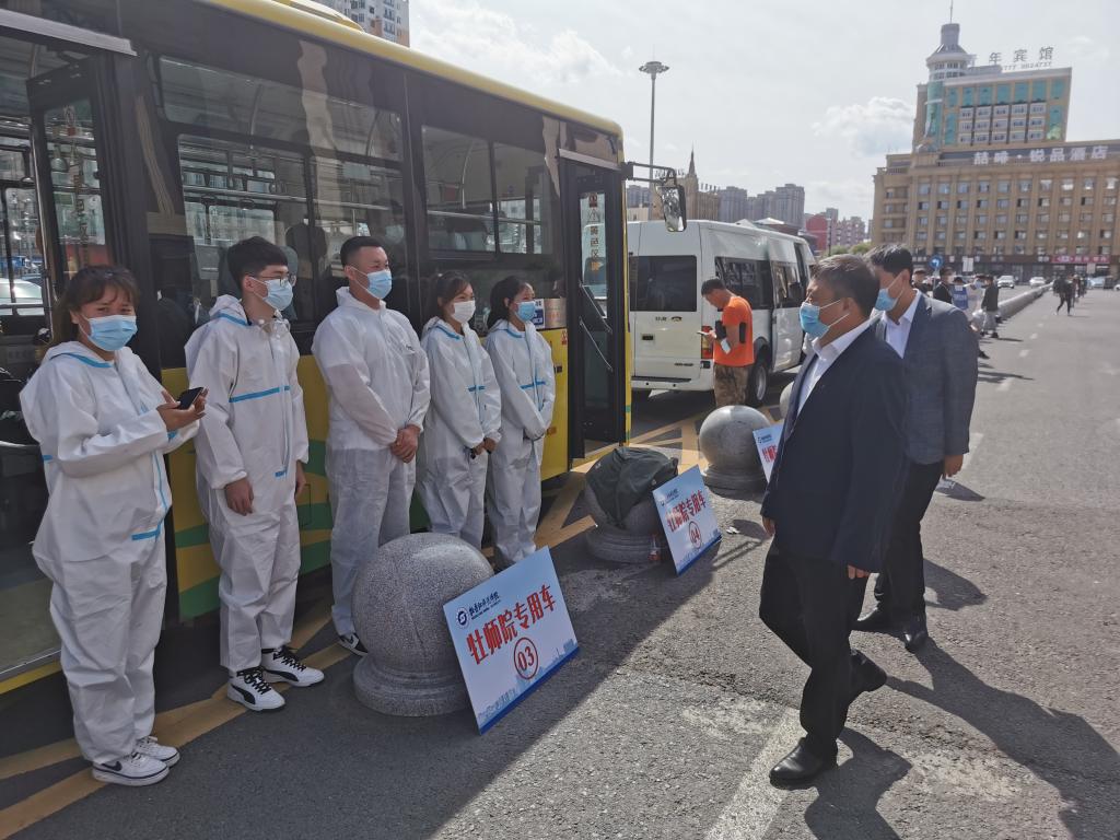 学校党政领导在学生处、后勤管理处、武装保卫处等相关处室负责人的陪同下来到火车站、返校报到现场、16号学生公寓,实地查看学生返校各项工作,了解学生返校情况,查看新建公寓准备情况和后勤整改项目完成情况,看望慰问现场工作人员,并与返校的学生亲切交流,对返校报到过程中的重点环节提出指导意见,对项目收尾工作提出具体要求。