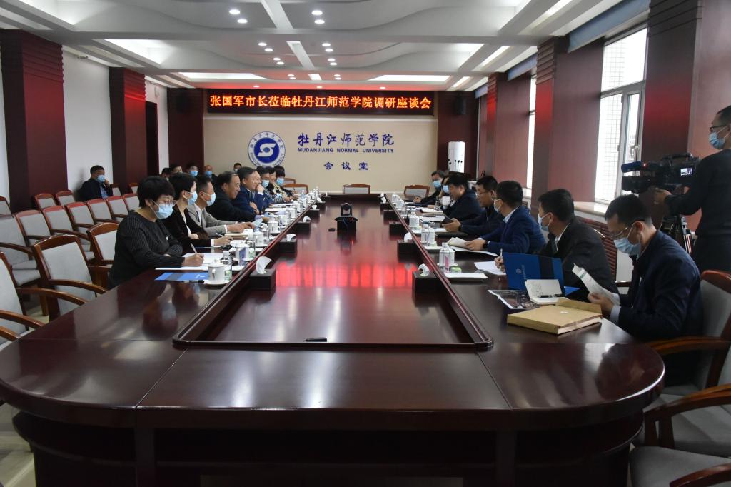 座谈会上,我校党委书记王志浩对张国军市长带领相关职能部门专程到校调研指导工作表示欢迎,对牡丹江市委市政府多年来对学校的关注与支持表示感谢,并从学校规模创历史新高、学科专业结构不断优化、办学特色不断彰显、招生质量不断提高、办学条件不断改善等5个方面介绍了学校近年来发展现状。
