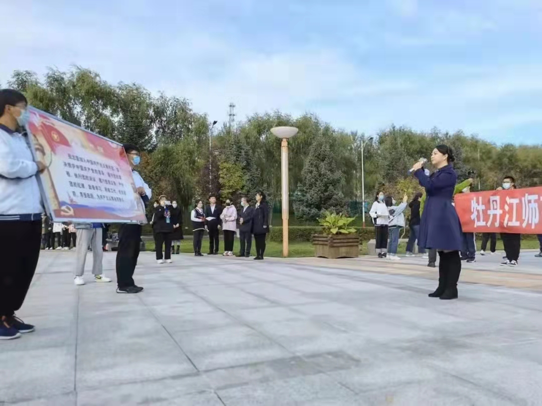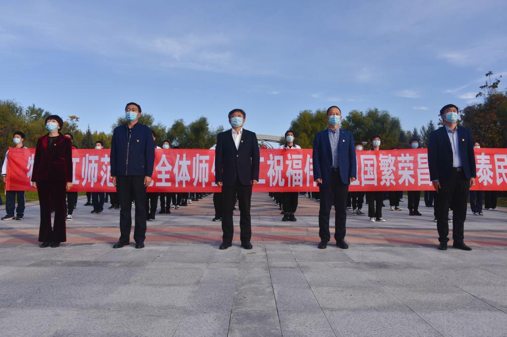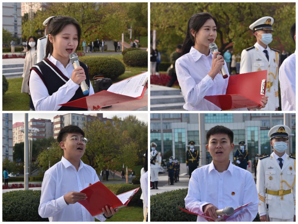 仪式上,我校优秀学子代表、第四届黑龙江省旅游发展大会形象大使冠军、应用英语学院芦玉,我校2020年度“大学生自强之星”、大学生创业之星、教育科学学院林禹涵,我校2020年度“大学生自强之星”、青年好网民代表、历史与文化学院李杨在国旗下分享他们的青春事迹。