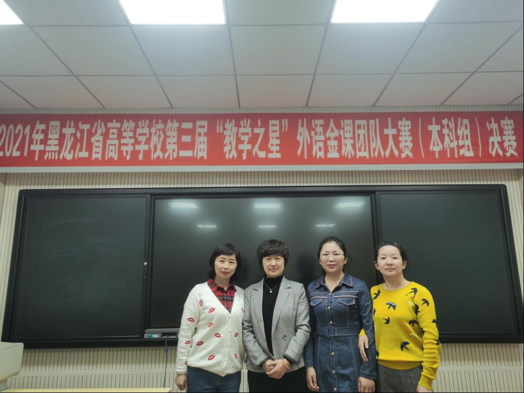 11月16日,2021年黑龙江省高等学校第三届“教学之星”外语金课团队大赛决赛以线上、线下相结合的方式举行。我校西方语言学院高级英语教学团队荣获一等奖,大学英语教学团队荣获二等奖。