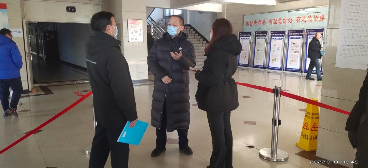学校于1月8日至9日承办黑龙江省中小学教师资格面试工作,为确保面试工作顺利进行,1月7日上午,院长、党委副书记李春江带领省乡村教师教育发展学院(继续教育学院)相关同志对疫情防控及面试准备工作进行了实地检查,并亲切慰问了各岗位考务工作人员。