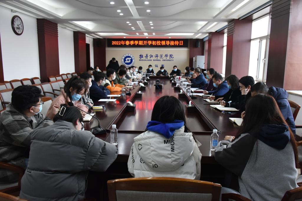 3月8日下午,2022年春季学期开学初校领导接待日活动在综合楼1206会议室举行。院长、党委副书记李春江,党委副书记刘松,副院长、党委常委程爽,副院长、党委常委张艳霞,副院长张冰,副院长、党委常委张晓祥及相关职能部门负责人,与各二级学院辅导员、学生代表面对面亲切交流,倾听师生的意见和建议。