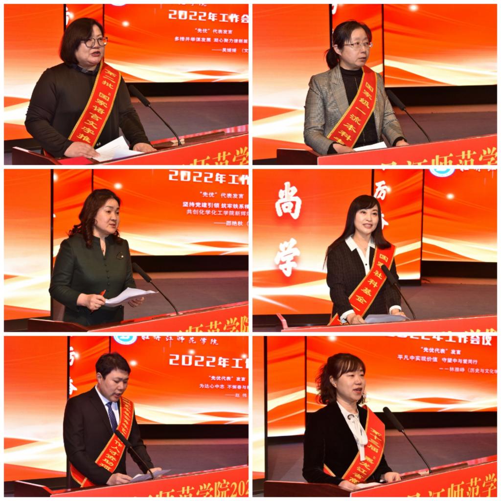 会上,校领导还分别为“助力乡村振兴千人行动”乡镇挂职教师、获得厅局级以上奖励的教师代表、获批省部级以上项目的教师代表、获得省级荣誉和国家级荣誉的集体代表颁奖。文学院党委书记吴媛媛、教育科学学院院长于海英、化学化工学院党委书记邵艳秋、马克思主义学院教师董一冰、美术与设计学院教师赵伟、历史与文化学院党委副书记林雅峥作为先优代表先后发言。