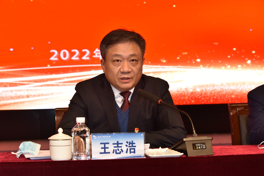 党委书记王志浩在会上讲话,就高质量做好2022年工作提出了要求。一要保持住全面融入新发展格局取得的成果和高质量发展的势头。他回顾了过去一年我校在融入高等教育国家发展战略和格局中取得的5个方面新突破。在融入区域高等教育发展战略和格局中,我校在省级层面实现了9个方面工作的新跨越。总结了在融入新发展格局中,学校层面在6个方面推进改革和建设所做的打基础利长远的事项。二要把握好今年的工作目标、节奏、任务。要清醒认识到位,认真落实要求。要准确理解和把握新时期高等教育工作的重点。全面贯彻落实省委省政府的决策部署。认真落实上级主管部门工作要求。要提早谋划设计全年工作。要做好保稳定、保落实、保发展工作。