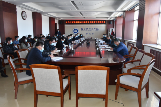 党委书记王志浩在会上讲话。他以学业、就业与保障三位一体的关系为切入点,对2022届毕业生就业工作提出四点要求。一是要认真梳理就业工作取得的成绩及存在的问题。取得成绩要用数据做支撑,将就业工作做细、做实,要将意向变成具体,将定性变成定量,将定量变成落实。要从资源匹配、队伍建设、就业基地及市场开发、就业指导、人才培养、考核与绩效及对就业创业关系的理解等方面梳理问题。二是要压实、压细、压牢各方面责任。要将就业工作分解到各个层面,建立台账,对标推进。要做到周周有报表、月月有调度、中间有检查。三是要狠抓落实,奖惩分明。要努力开发各方面资源,调动全员积极性,将就业工作指标细化到每位教职工肩上。四是要协同推进,做好就业、人才培养及疫情防控工作。各级领导班子要起到带头作用,将“保稳定、保落实、保发展”的“三保”工作落实到位。