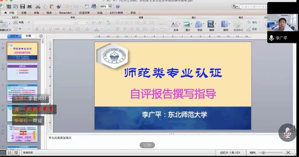 为持续推进我校师范类专业认证工作,提高专业自评报告撰写质量,3月16日下午,学校邀请教育部师范类专业认证专家委员会委员、东北师范大学教师教育研究所所长、博士生导师李广平教授在线上作《新要求下专业认证自评报告撰写》专题报告。设有师范类专业的二级学院院长、副院长、专业课教师、教学论教师,教务处及教学质量评估中心工作人员共200余人参加了报告会。会议由副院长、党委常委程爽主持。
