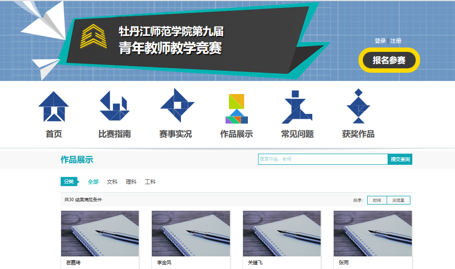 竞赛分文科、理工两组,采用“录播函评”形式进行。参赛教师从教学内容、教学方式方法及教学反思等方面精心准备,将教学大纲、课堂教学设计、教学课件和教学视频上传至竞赛平台。