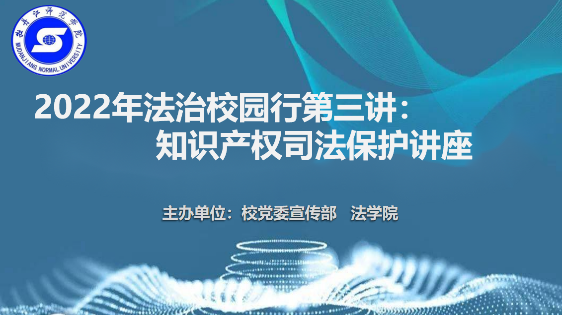 2022年4月26日,是第22个世界知识产权日,今年的主题是“知识产权与青年:为更美好的未来而创新”。按照《知识产权强国建设纲要(2021-2035年)》的目标,结合《教育部2022年工作要点》的要求,4月22日下午,学校邀请牡丹江市中级人民法院民事审判三庭二级法官刘洋作2022年法治校园行第三讲暨知识产权司法保护讲座。学校部分师生和校外法律爱好者在线上聆听了讲座。讲座由法学院副院长李学锋主持。